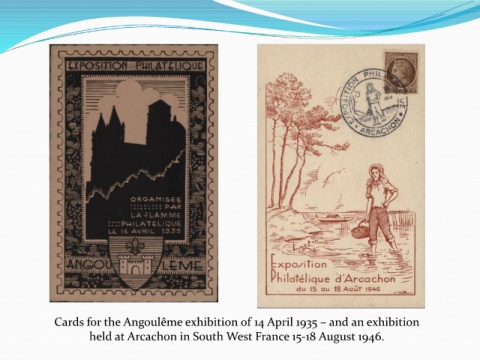Cards for the Angoulême exhibition of 14 April 1935 – and an exhibition held at Arcachon in South West France 15-18 August 1946.