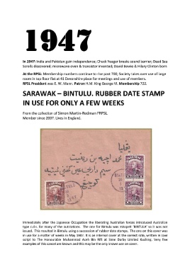 issued. This resulted in Bintulu using a succession of rubber date stamps. The one on this cover was