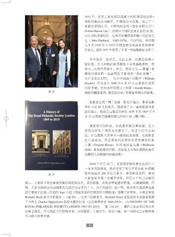 圖 29 家和地區的 200 多位元會士、會員和朋友們,參加 票上使用,皇家郵學會所有健在的原會長、現正副會長及候任會長在首日封上簽了名,留作紀念。