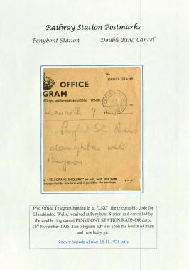 the double ring cancel PENYBONT STATION/RADNOR dated