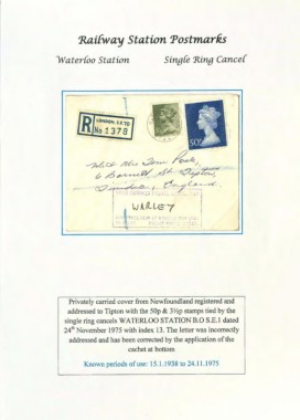 single ring cancels WATERLOO STATION B.O S.E.1 dated