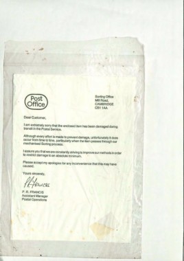 I am extremely sorry that the enclosed item has been damaged during