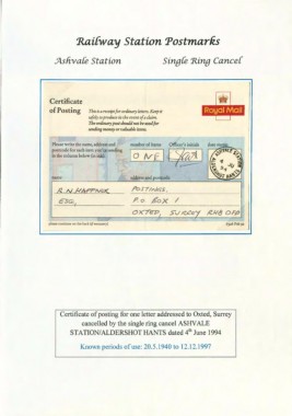 Certificate of posting for one letter addressed to Oxted, Surrey