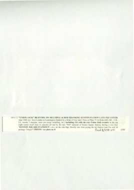 1074 ~ "UNION JACK" RE-ENTRY ON MULTIPLE ld RED FRANKING EUSTON STATION LATE FEE COVER;
