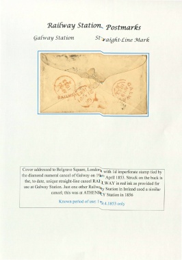 the diamond numeral cancel of Galway on 1 th April 1853. Struck on the back is