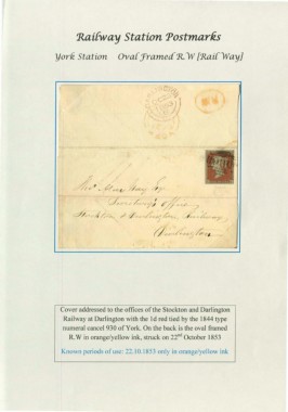 Railway at Darlington with the 1 d red tied by the 1844 type