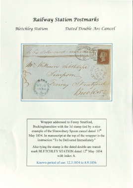 mark BLETCHLEY STATION dated 12th May 1854