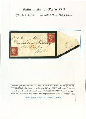back flap is the undated thimble cancel FLAXTON STATION struck in blue-