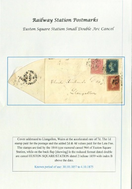 arc cancel EUSTON SQUARE/STATION dated 21stJune 1859 with index B
