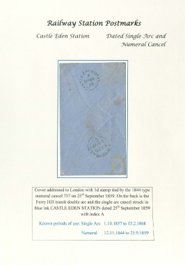 blue ink CASTLE EDEN STATION dated 25th September 1859