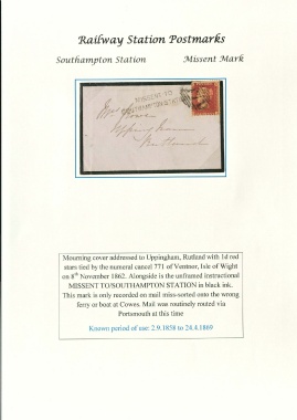 MISSENT TO/SOUTHAMPTON STATION in black ink.