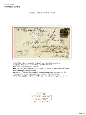 Red “LCO Postage Not Paid To London” handstamp applied and forwarded to Boulogne
